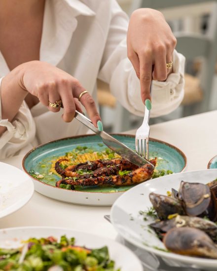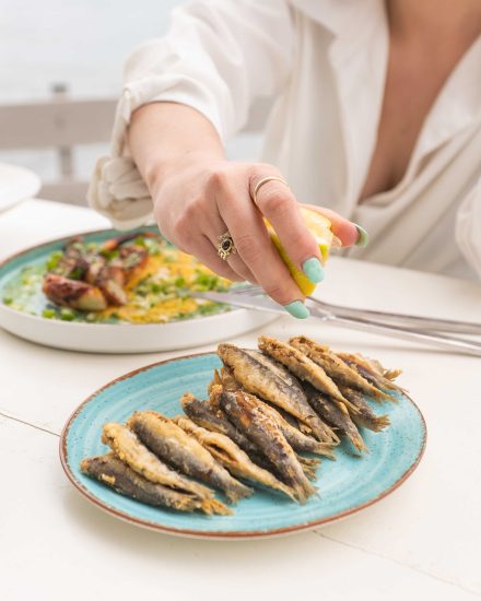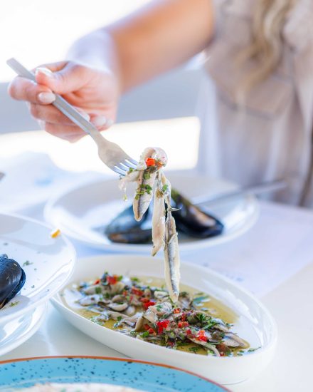 Literally located a few steps from the sea, emmiting a note of freshness in our newly renovated space, we are waiting for you to try our fresh fish from our local fisherman, seafood and our traditional specialities.