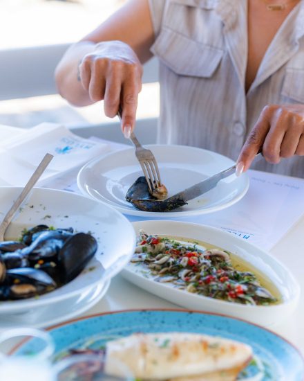 If you are a seafood lover Mylos is definitely the place to enjoy your seafood pasta, fresh scampi, calamari & grilled octopus, admiring the best view of the monumental Venetian castle of Frangokastello.